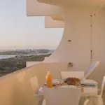 The 110 m^2 Best Houses 64 - Sunset Beach Ferrel enjoys a beachfront location and provides easy access to Praia da Cova da Alfarroba Public Bath about a 15-minute ride away. Guests can relax and take in sea views from a terrace of this 1-bedroom apartment.